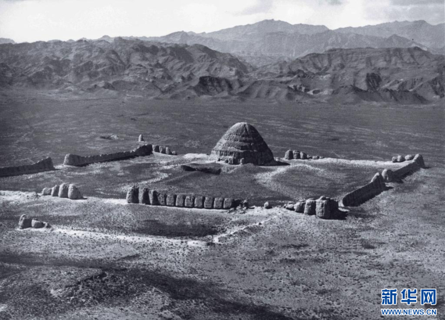 这是20世纪30年代,德国飞行员卡斯特飞越宁夏贺兰山时拍摄的西夏陵3号陵(资料照片)。新华社发