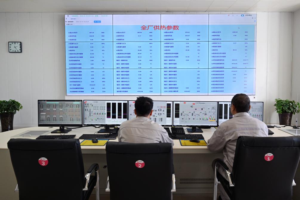 10月13日,国能宁夏灵武公司工作人员在监控室查看供热数据。王振彪 摄