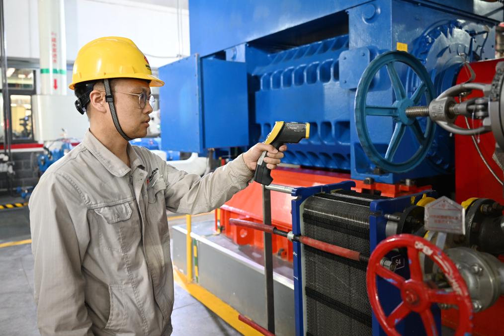 10月13日,国能宁夏灵武公司工作人员在检查供热设备运行情况。王振彪 摄