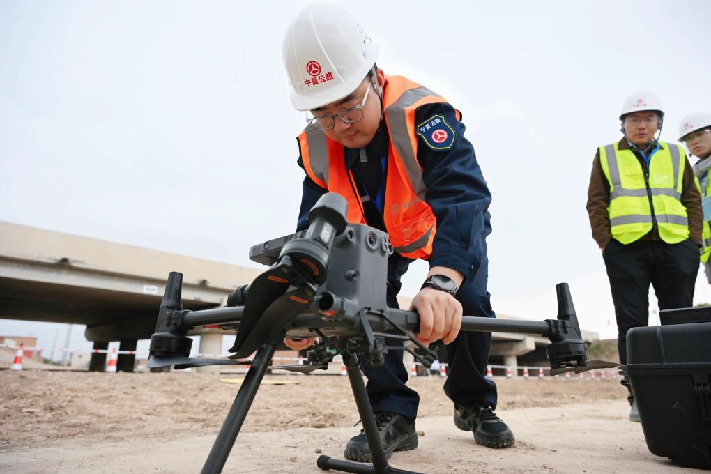 赛场之上,传统技艺与智能技术交相辉映。挖掘机操作区里,选手们操控机械臂上演“精准绣花”,挖斗将篮球从地上轻轻揽起,在数米高空平稳转运后稳稳投入篮筐;在路面病害修补竞赛区,各参赛小队携新型材料与设备快速响应,从病害诊断到沥青摊铺一气呵成,争取在最短时间内修补路面;无人机巡检赛区尤为引人注目,参赛队伍操控设备完成桥梁结构扫描后,即时生成巡检报告,“大家既能切磋智能装备使用技巧,又能交流实际场景应对经验,比单纯培训收获更大。” 参赛选手申琨表示。
