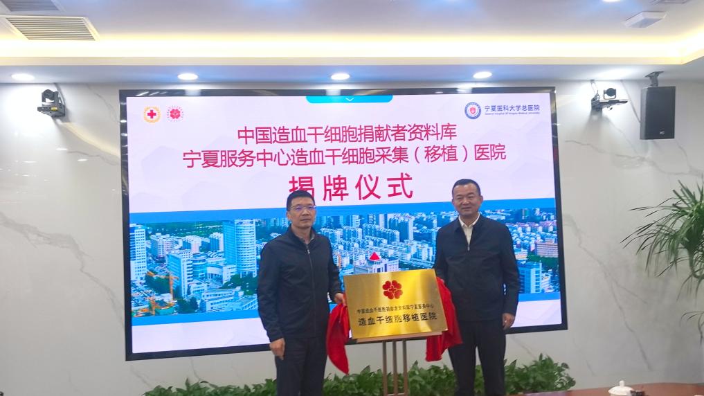 新华网银川10月21日电(记者马思嘉)21日,中国造血干细胞捐献者资料库宁夏服务中心造血干细胞采集(移植)医院在宁夏医科大学总医院举行揭牌仪式,宁夏回族自治区相关部门负责人、有关医疗专家及社会各界代表出席本次活动。
