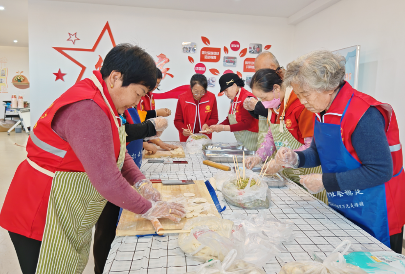 西湖社区上元名城小区“邻里驿家”里,工作人员贴心准备了牛肉青萝卜、羊肉胡萝卜等多种馅料及包饺子工具。居民们踊跃参与,分工协作,欢声笑语萦绕大厅。当热气腾腾的饺子端上桌,大家围坐品尝,真切感受社区大家庭的温暖。
