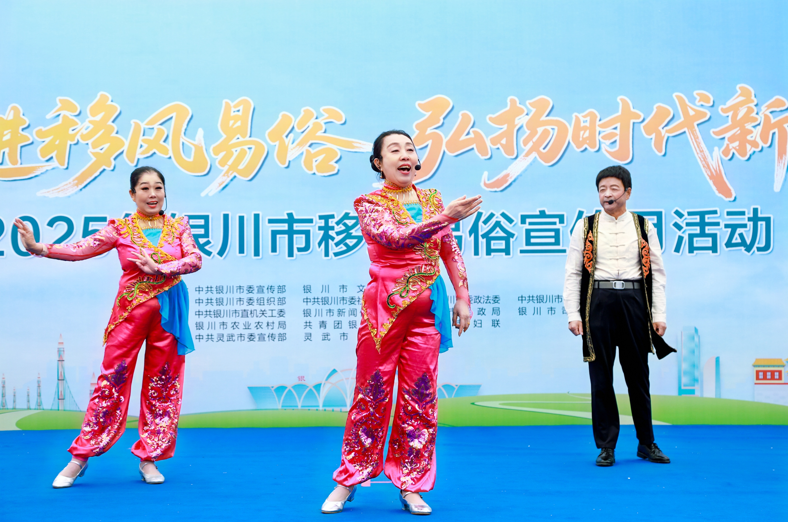活动在开场舞《领航新时代》的昂扬舞姿中拉开序幕。小品《亲家过招》聚焦高价彩礼这一群众关切问题,通过诙谐幽默的剧情演绎,让“婚事新办、节俭为荣”的理念在笑声中传递;宁夏花儿《新风劝诚》与宁夏道情《文明新风宣传员》,将婚事简办、孝老爱亲、拒绝攀比等内容融入悠扬唱腔,用群众喜闻乐见的乡音曲艺,让文明理念“声”入人心;舞蹈《移风易俗新风尚》以灵动的舞姿展现乡村文明新貌,赢得现场观众阵阵掌声。