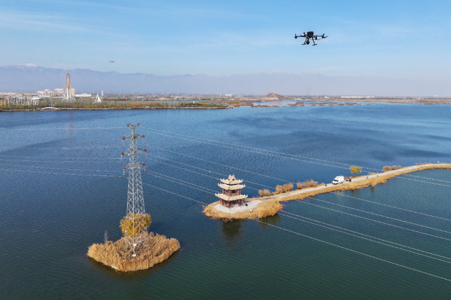 宁夏银川:智能无人机巡视保障线路迎峰度冬